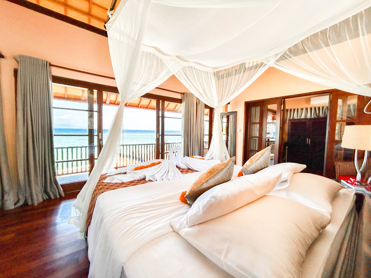 The two extra children would be accommodated by means of a spare bed or floor mattress, these are at an additional cost of IDR 500,000 per bed (subject to change). There is also an extra room directly next to the main bedroom that works perfectly for two children (under 12), but it is not suitable for adults.
